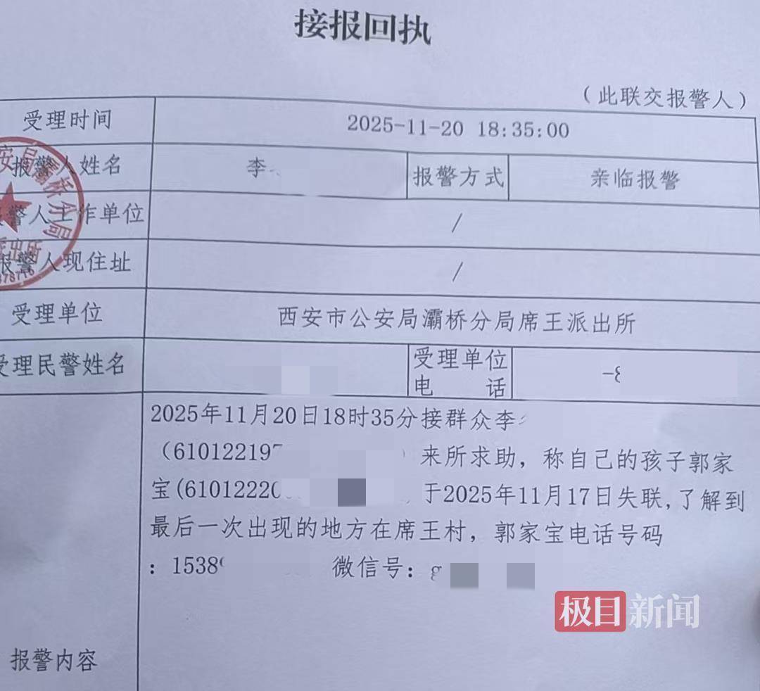 直到11月15日,家人发现郭某宝手机号打不通,朋友同学也不知道他的行踪,自此家人与他断联。